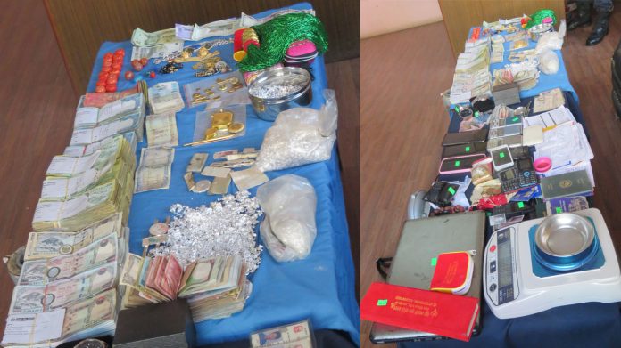 उनीहरुको साथबाट प्रहरीले लागूऔषध खैरो हेरोइन २७ ग्राम, ५ लाख ३२ हजार नगद, अमेरिकी डलर ६, ६० तोला ८७ लाल सुन, चाँदीका साना-ठूला टुक्रा गरि ५ किलो ६९३ ग्राम बरामद गरिएको डिएसपी कार्कीले बताए।