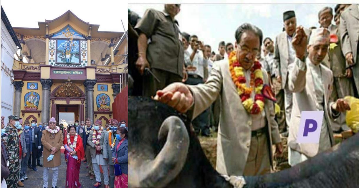 पशुपतिनाथमा पूजाआजाका लागि पुगेका प्रधानमन्त्री ओली र भैंसी पूजा गरिरहेका पुष्पकमल दाहाल प्रचण्डका बेग्लाबेग्लै तस्बिर फेसबुकमा राखेर बिहीबार बिहान सल्लाहकार थापाले पशुपतिनाथमा पूजाआजा गरेजस्तो भैंसी पूजा स्वभाविक मानिँदैन भन्नुभएको छ ।